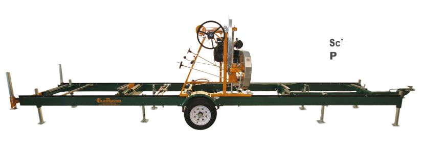 • Scierie mobile CHAMPION pour des bois de 80 cm et de 6,4 mètres ou 7,32m de longueur.